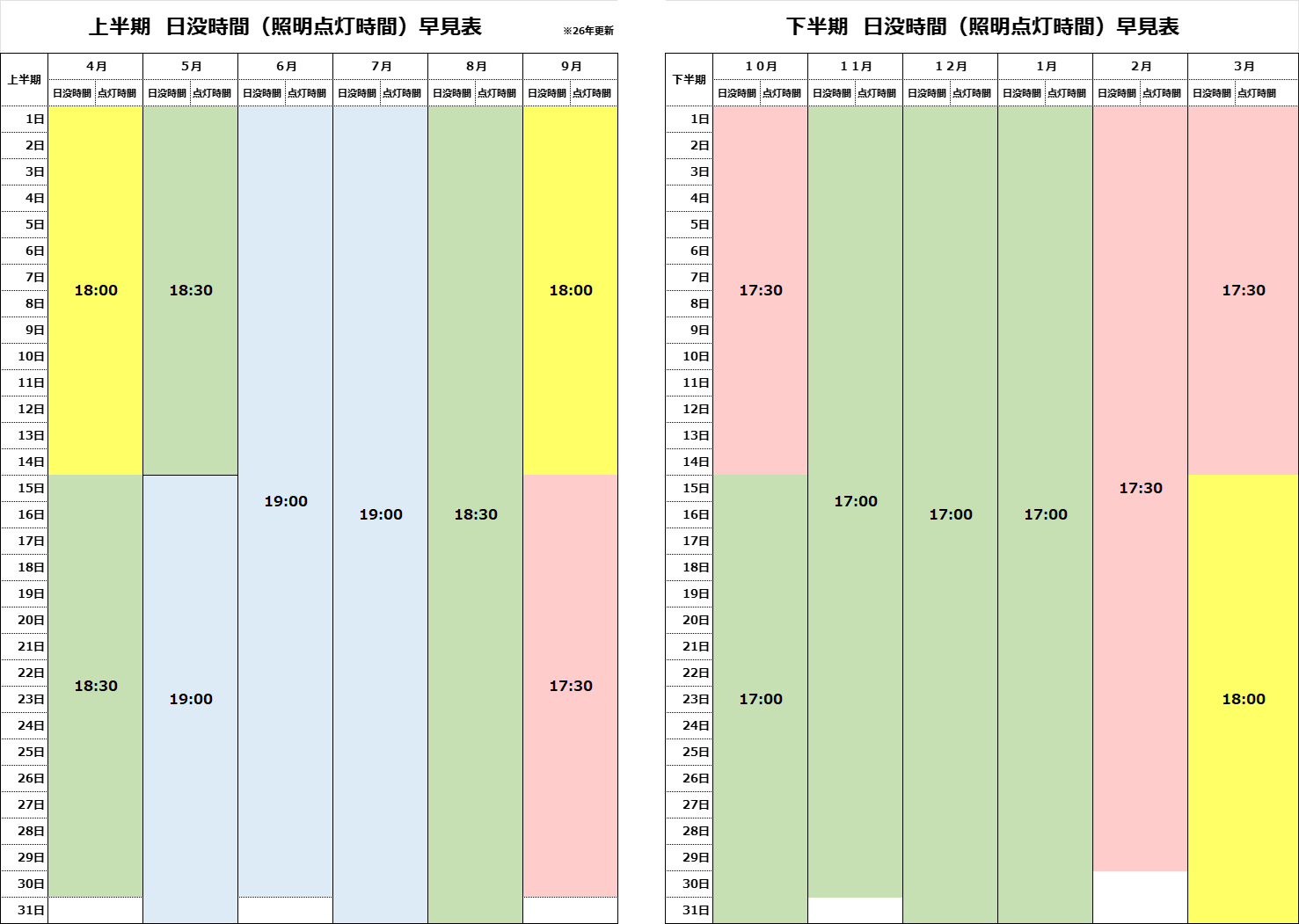 ※本年度より日の入り時間を見直し、一部照明点灯時間を変更しています。